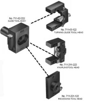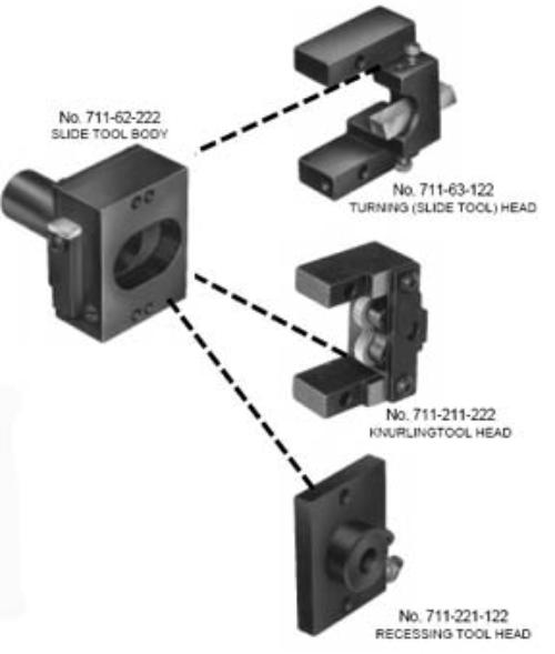 Slide Tool Body With 3 Interchangeable Heads for Recessing, Turing, Knurling